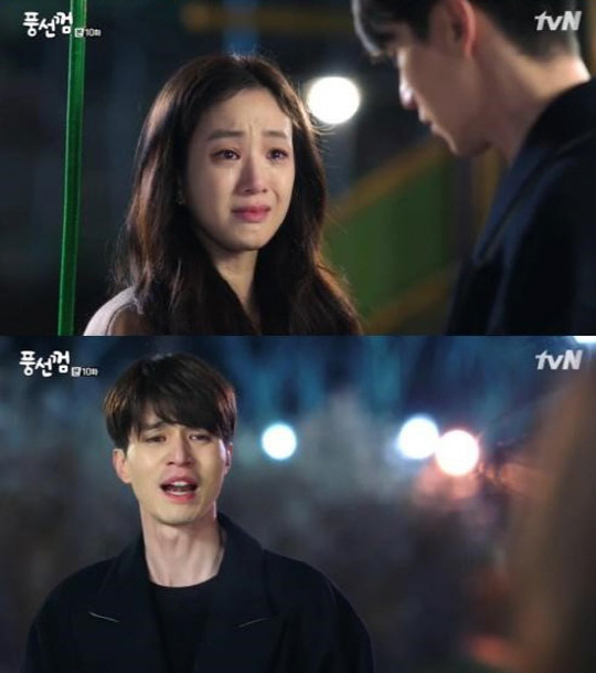 24일 방송된 tvN 월화드라마 '풍선껌' 10회에서는 박리환(이동욱 분)이 김행아(정려원)와 이별하는 모습이 그려졌다.