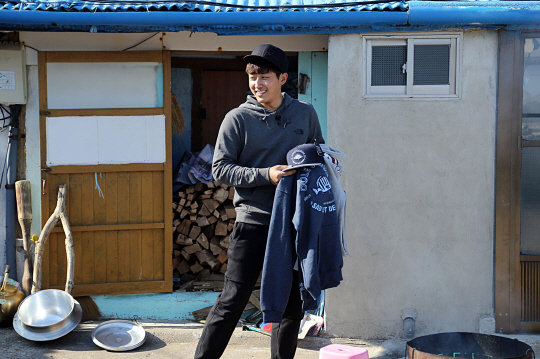 손호준이 들고 있는 생선 후드는 만재도 3대장 참돔, 돌돔, 문어가 프린팅된 '삼시세끼-어촌편2'의 후드 티셔츠다.