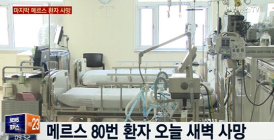 80번 환자가 숨지면서 국내 메르스 감염자는 지난 5월 20일 1번 환자 발생 이후 여섯 달 만에 한 명도 남지 않게 됐다.