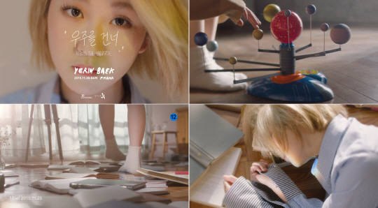 JYP엔터테인먼트는 26일 0시 '우주를 건너'의 뮤직비디오 티저 영상을 공개하며, 백예린의 첫 번째 솔로 앨범에 대한 기대감을 키웠다. 이날 공개된 영상에는 평범한 일상 속에 오도카니 놓인 열아홉 소녀 백예린의 모습이 담겨있다.