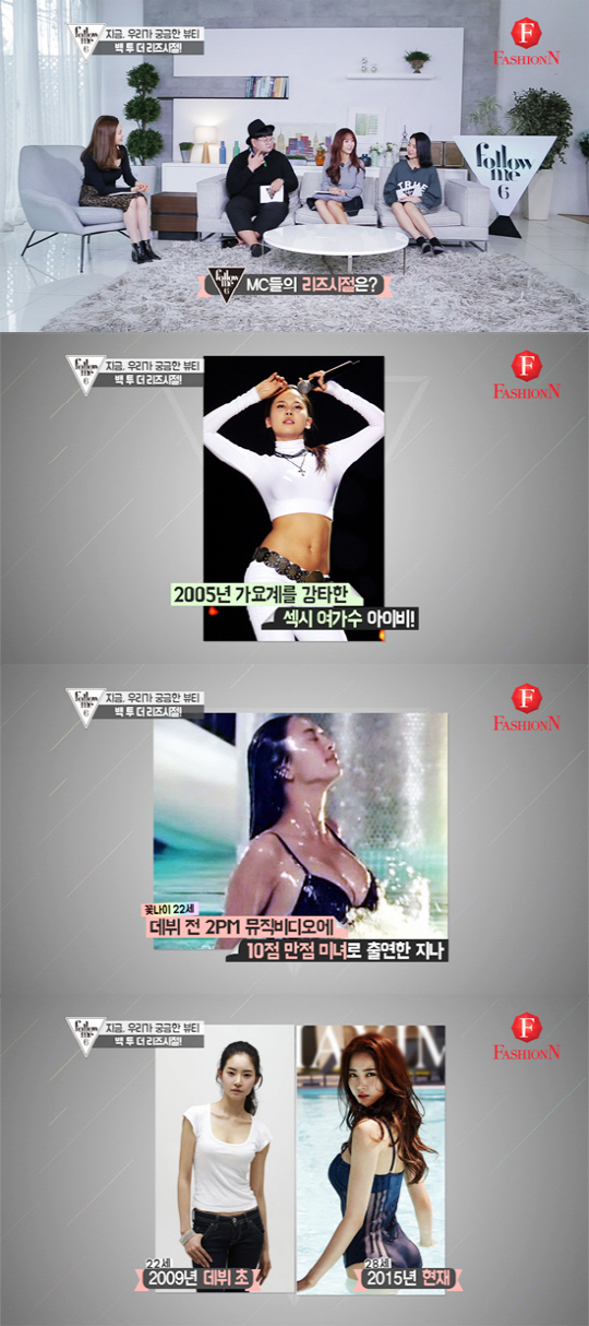 지나는 과거 2PM 뮤직 비디오 출연 사진이 공개됐다. 사진을 본 지나는 "저 땐 얼굴보다 다른 곳이 빵빵했다"며 화끈한 돌직구를 날렸다. 또 다른 MC 황승언은 자신의 데뷔 초 사진을 보고 "데뷔 때 사진이 성형 전이라고 오해하는 분들이 있다"면서 안타까워했다. 이에 아이비는 "사실 화장법만 바꿔도 인상이 확 변한다"며 황승언의 청순미 넘치는 과거사진을 보고 말을 덧붙였다.