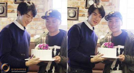 공개된 사진 속 유연석은 첫 공연을 성황리에 마친 후 함께 무대에 섰던 조재윤과 축하 케이크를 들고 있다. 유연석은 케이크를 바라보며 수줍은 미소를 짓다가 카메라를 응시하며 환한 웃음을 보인다.