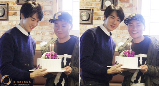 공개된 사진 속 유연석은 첫 공연을 성황리에 마친 후 함께 무대에 섰던 조재윤과 축하 케이크를 들고 있다. 유연석은 케이크를 바라보며 수줍은 미소를 짓다가 카메라를 응시하며 환한 웃음을 보인다.
