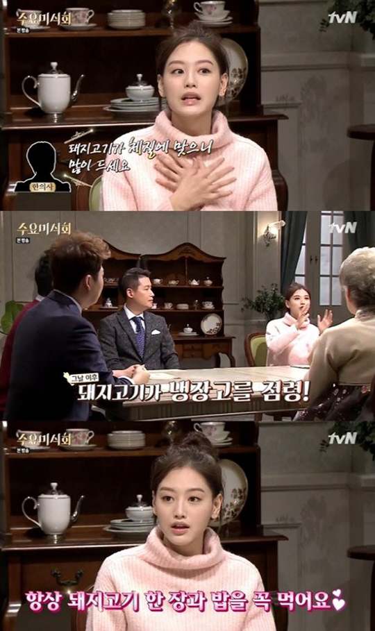 이날 방송에서 재경은 "하루 한끼는 돼지고기를 꼭 먹는다. 청소년도 아닌데 여드름이 나더라. 그래서 한의원에 갔더니 돼지고기가 맞는다더라. 그래서 냉장고에 부위별로 넣어놓고 먹는다"고 말했다.