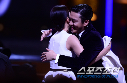 한국 영화 최고의 권위를 자랑하는 '제36회 청룡영화상' 시상식이 26일 서울 경희대학교 평화의 전당에서 열렸다. '청룡영화상'은 1963년 처음 개최된 이래 한국영화 산업의 찬란한 발전에 기여하며 가장 신뢰받는 대한민국 최고의 영화상으로 자리매김했다. 특히 올해 시상식은 역대 최강급 후보들이 포진해 있어 불꽃튀는 접전이 예상된다. 여우조연상을 수상한 '사도'의 전혜진이 유아인의 축하를 받고 있다. 경희대=조병관 기자 rainmaker@sportschosun.com/2015.11.26/