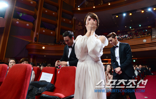배우 이정현이 여자 주연상을 수상하며 눈물을 흘렸다.