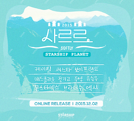 26일 스타쉽엔터테인먼트 공식 SNS 채널에 윈터송 '사르르'의 티징 이미지가 공개되었다. 이는 국내 최고의 실력파 아티스트가 소속된 스타쉽엔터테인먼트의 합동 프로젝트인 '스타쉽 플래닛'의 2015년 윈터 프로젝트로 밝혀졌다.