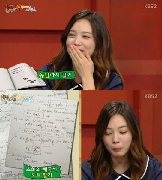 이날 윤소희는 자신의 공부 비결에 대해 "수업시간에 엄청나게 집중한다. 선생님 농담까지 기억할 정도로 100% 집중한다. 농담도 다 필기했다"라고 밝혔다.
