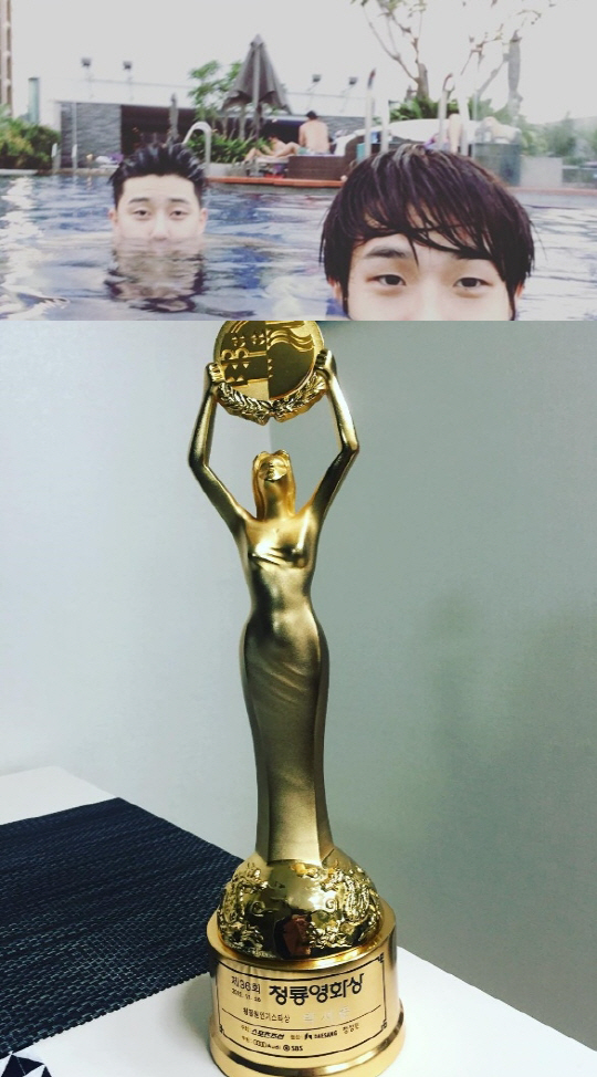 또 글과 함께 청룡영화상에서 받은 트로피 사진을 게재했다.