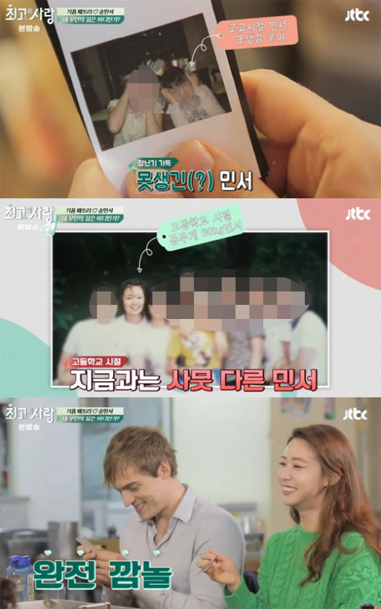 이날 송민서의 학창시절 못생김 주의(?) 사진이 공개됐다. 송민서는 친구들이 사진을 보여주기 전 "진정한 친구인지를 보겠다"며 경계했다.