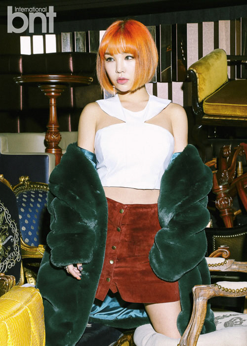 친한 래퍼에 관한 질문에 그는 "길미, 예지, 수민과 제일 친하다"며 "효린과는 집이 가까워 같이 유기견 봉사활동도 금요일만 되면 같이 효린 집에서 프로그램을 같이 시청했었다"고 말했다.