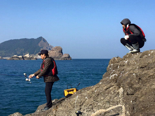 사진에는 바다를 향해 결의에 찬 모습으로 낚싯대를 던진 '참바다' 유해진과 그 뒷모습을 쪼그려앉아 유심히 지켜보는 손호준의 모습이 담겼다.