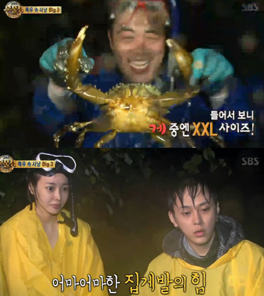 그는 물고기를 잡은 뒤 작은 게를 잡기 위해 바닥을 보며 걷다가 머드 크랩을 발견, 단번에 잡으며 큰 형의 위엄을 보여줬다.