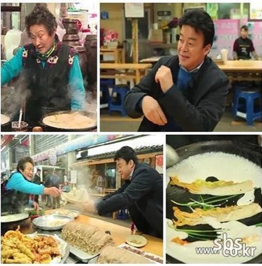 이밖에 김치, 고추 등 모든 재료를 넣고 부친 섞어빈대떡을 본 백종원은 "빈대떡의 결정판이 여기 있었다"며 주문하지 못한 것에 아쉬워했다. 이어 "내가 돈 냈으면 화날 뻔 했네" 라고 말해 웃음을 자아냈다.