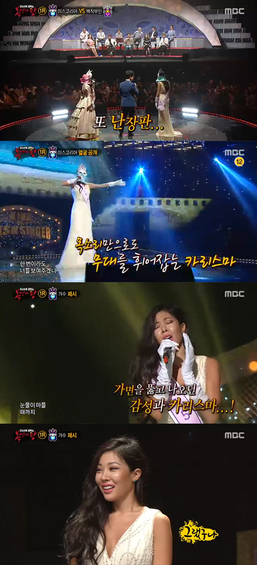 이미 연예인 판정단에서는 미스코리아가 '제시'라는 추측이 나왔고, 미스코리아는 2라운드 준비곡인 플라이투더스카이의 'Sea of Love'를 열창했다. 이어 복면을 벗은 미스코리아는 판정단의 추측대로 제시임이 드러났다.