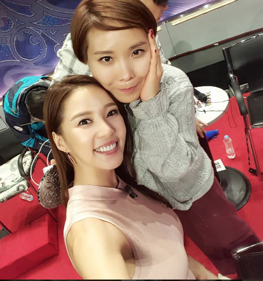 공개한 사진에는 개그우먼 신봉선과 함께 찍은 모습이다. 신봉선의 꿀피부 못지 않은 레이양의 볼륨 몸매가 눈길을 끈다.
