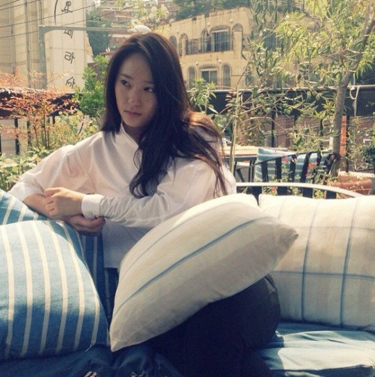 SNS 속 크리스탈의 일상 모습.여자들의 로망인 루즈핏 화이트 셔츠가 긴 머리카락과 잘 어우러진다. 자신에게 잘 어울리는 흰 셔츠만 가지고 있어도, 심플하면서도 우아한 룩이 완성될 수 있다.