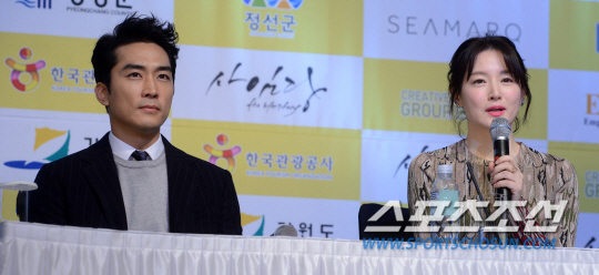 배우 이영애와 송승헌이 30일 오후 강원도 강릉 씨마크호텔에서 진행된 SBS '사임당, 더 허스토리(the Herstory)' 기자간담회 및 현장공개에 참석해 질문에 답하고 있다. 이영애가 한국 미술사를 전공한 대학강사와 신사임당 1인2역을 맡아 화제가 된 SBS '사임당, 더 허스토리(the Herstory)'는 조선시대 사임당 신씨의 삶을 재해석한 작품으로 천재화가 사임당의 예술혼과 불멸의 사랑을 그린 드라마다. 한편 지난 8월부터 촬영에 돌입한 '사임당'은 높은 완성도를 위해 100% 사전 제작되며 2016년 SBS를 통해 방송된다. 강릉=허상욱 기자 wook@sportschosun.com/2015.11.30/