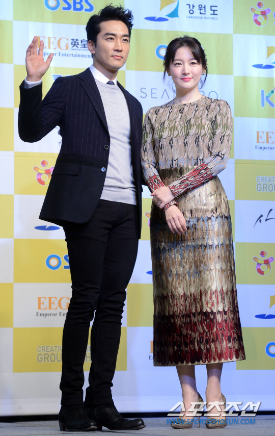 배우 송승헌과 이영애가 30일 오후 강원도 강릉 씨마크호텔에서 진행된 SBS '사임당, 더 허스토리(the Herstory)' 기자간담회 및 현장공개에 참석해 포즈를 취하고있다. 이영애가 한국 미술사를 전공한 대학강사와 신사임당 1인2역을 맡아 화제가 된 SBS '사임당, 더 허스토리(the Herstory)'는 조선시대 사임당 신씨의 삶을 재해석한 작품으로 천재화가 사임당의 예술혼과 불멸의 사랑을 그린 드라마다. 한편 지난 8월부터 촬영에 돌입한 '사임당'은 높은 완성도를 위해 100% 사전 제작되며 2016년 SBS를 통해 방송된다. 강릉=허상욱 기자 wook@sportschosun.com/2015.11.30/