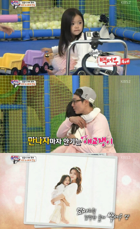 '슈퍼맨이 돌아왔다'에 깜짝 출연한 정시아-백도빈 딸 서우의 미모에 시선이 쏠렸다.