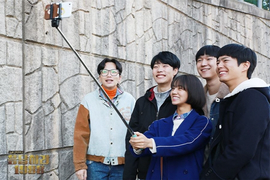 공개 된 사진에는 덕선 역의 혜리가 셀카봉을 들고 극중 골목 친구로 등장하는 류준열(정환 역), 고경표(선우 역), 박보검(택 역), 이동휘(동룡 역)와 함께 셀카를 찍고 있는 모습이 담겼다.