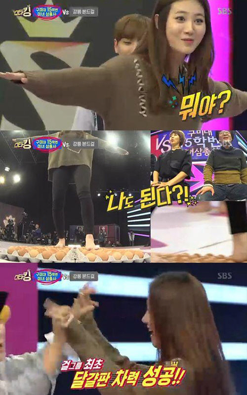 '스타킹' 유라, 걸그룹 최초 달걀판 차력 성공 '깜짝'