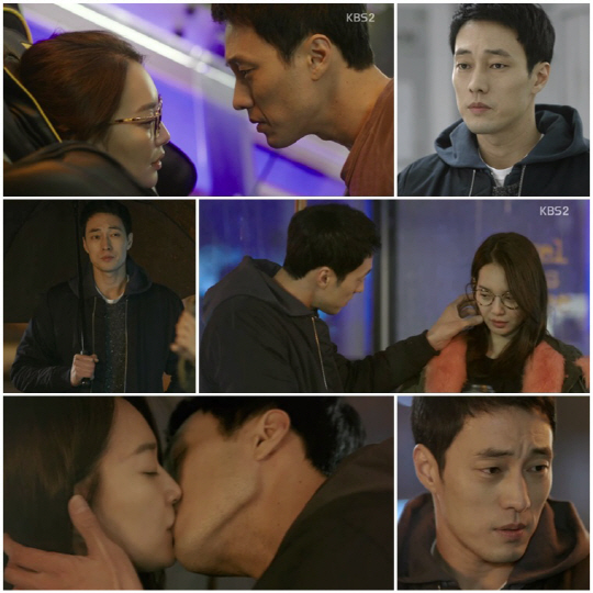 순간 영호와 단둘이 차 안에 앉아있기 쑥스러웠던 주은은 황급히 차 밖을 나섰다. 이후 커피숍 영업시간이 마감된 바람에 건물 밖 차i! ?' 아래서 홀로 서있던 주은 앞에 우산을 쓴 영호가 나타났던 터. 더욱이 영호는 주은을 사랑스러운 눈길로 바라보며 자신의 차는 고장 나지 않았다고 밝혀 주은을 당황케 했다. 이어 영호가 주은의 얼굴을 매만지자 주은은 "장난하지 마세요"라고 대답한 상태. 이에 영호는 우산을 활짝 펴 주은과 자신만을 위한 아늑한 공간을 만든 뒤 "진짜 모르나 보네. 남자는 장난치고 싶은 여자랑 다른 것도 하고 싶은데, 강주은씨 몸은 내 마음이니까 NO 못해요"라고 고백하는 동시에 주은에게 기습키스를 하며 본격 로맨스를 예고해 시청자들을 심쿵하게 만들었다.
