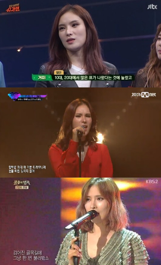 거미의 활약은 여기서 끝이 아니었다. 거미는 1일 방송된 JTBC '투유 프로젝트-슈가맨'에서 유희열 팀의 '쇼맨'으로 나섰다. '슈가맨'은 대한민국 가요계의 한 시대를 풍미했다가 사라진 가수, 일명 '슈가맨 (SUGAR MAN)'을 찾아 '쇼맨'들이 그들의 노래를 재해석해 선보이는 프로그램.