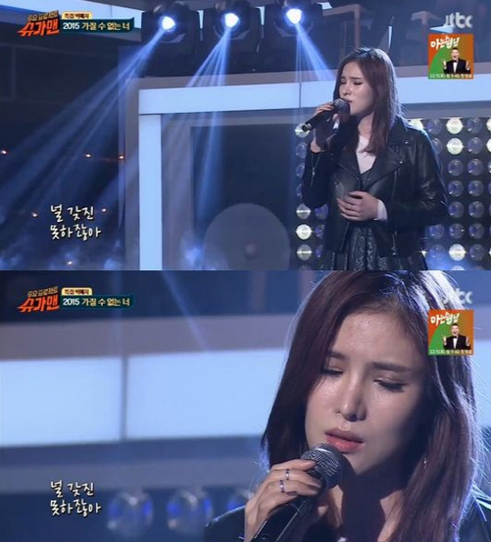 1일 방송된 JTBC '투유 프로젝트 슈가맨'에서는 거미는 뱅크 정시로의 '가질 수 없는 너'의 2015년 버전 무대를 선사했다.