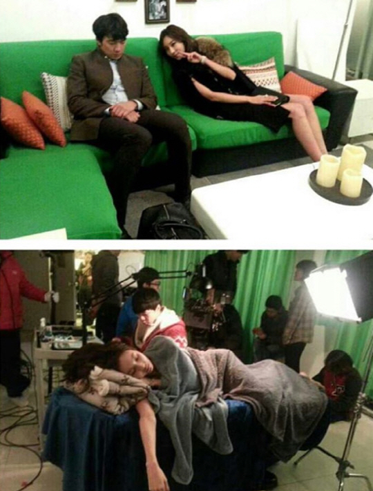 특히 쪽 잠을 자고 있는 송일국과 다르게 병원 촬영인 듯 수술대에 누워 잠을 청하고 있는 서영의 모습에 시선이 집중됐다.