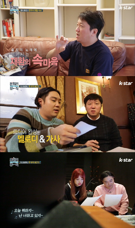 3일 오후 방송되는 K STAR '돈 워리 뮤직'에서는 유재환과 함께 듀엣곡을 녹음하는 솔지의 모습이 공개된다.