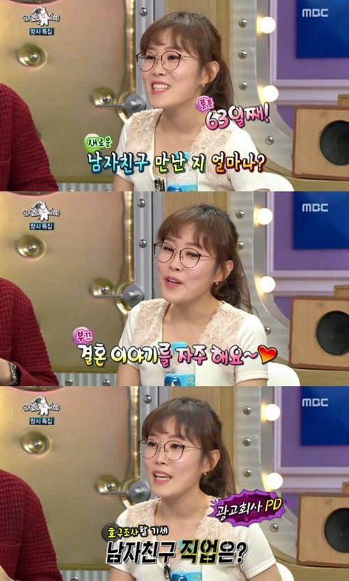 이날 박슬기는 "현재 63일된 남자친구가 있다. 1살 연상이고, 직업은 광고회사 PD다"라고 말했다.