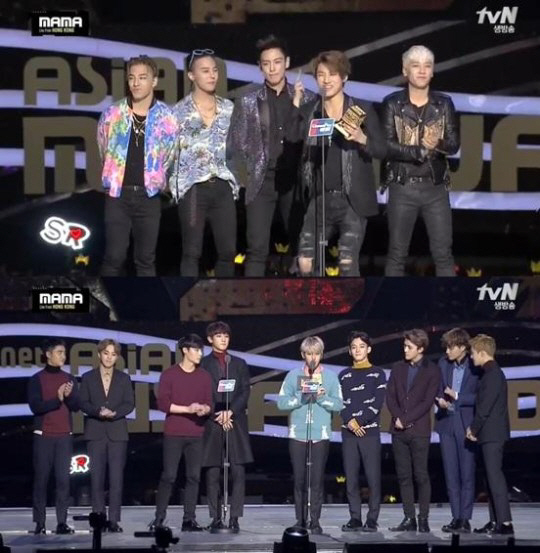 그룹 빅뱅과 엑소가 음악 시상식인 2015 'Mnet 아시안 뮤직 어워즈'에서 4관왕의 영예를 안았다.