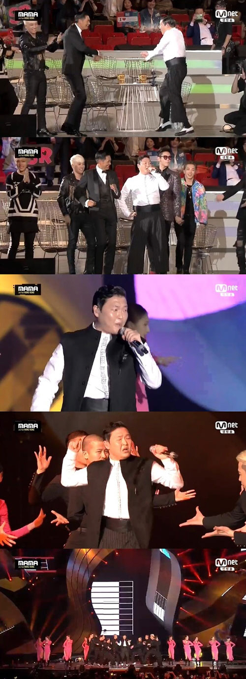 이어 싸이는 글로벌 히트곡 '강남스타일'을 열창하며 말춤을 선보였다. '강남스타일' 전주가 흐르자 큰 환호성이 흘러나왔고, 특히 관객석에 있던 중화권 스타 주윤발도 싸이와 함께 동반 말춤을 춰 시선을 사로잡았다.