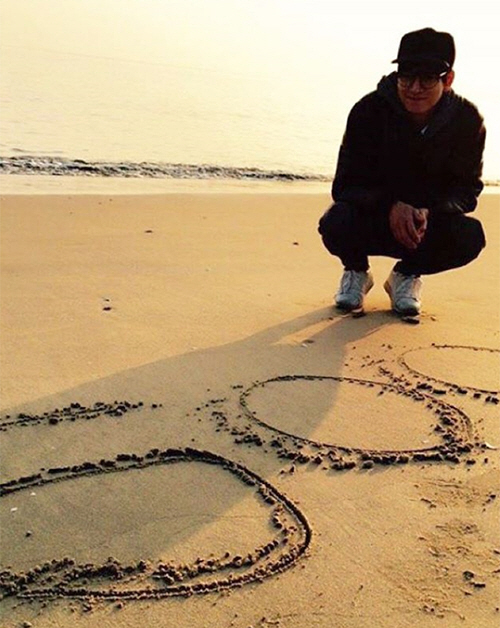 사진에서 강동원은 현재 영화 촬영 중인 전남 완도의 해변 모래사장에 로맨틱하게 숫자 '500'을 써놓고 그 앞에 쪼그려 앉아 미소를 짓고 있어 눈길을 끈다.