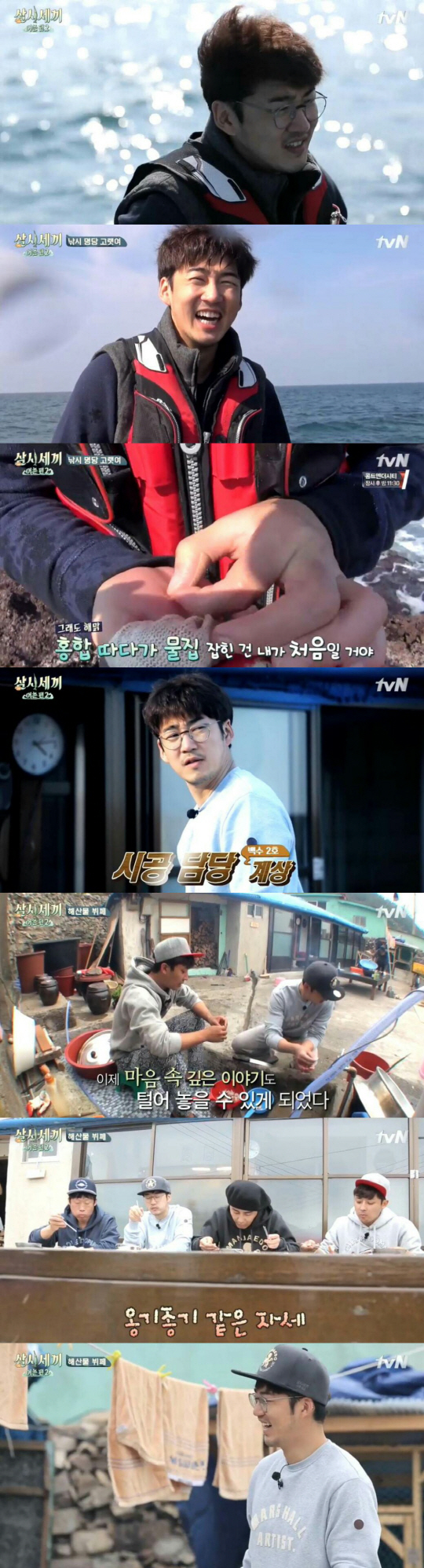 첫 날부터 만재도 백수라는 별명을 얻을 정도로 완벽하게 적응한 윤계상은 마지막날 <삼시세끼>의 가족같은 게스트가 돼있었다. 옹기종기 모여 같은 자세로 밥을 먹으며 그야말로 '삼시세끼'를 함께한 이들의 가족 케미는 친근한 윤계상의 매력을 다시금 느낄 수 있게 했다.