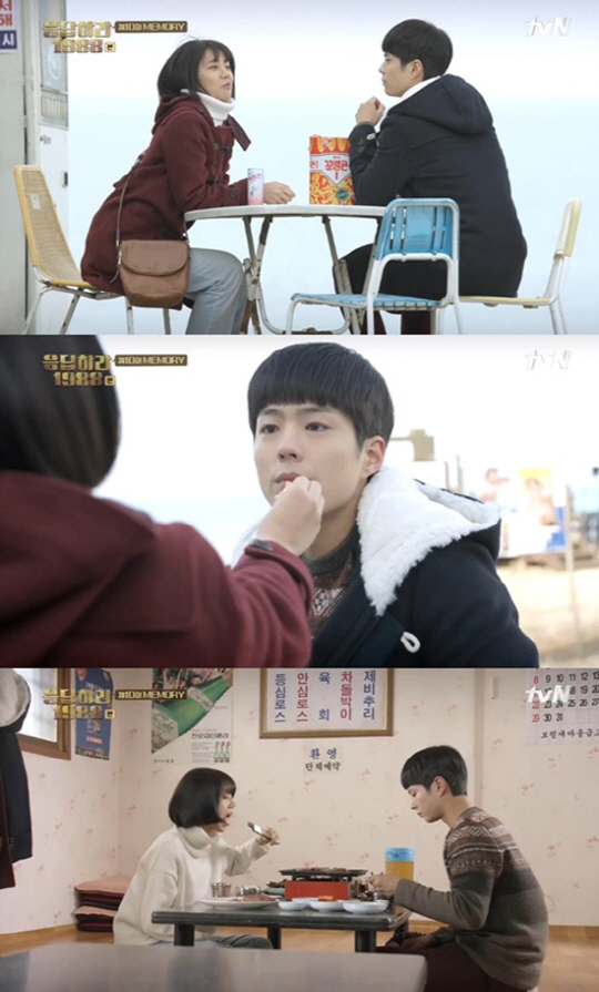 해수욕장에 도착한 정환과 선우(고경표 분)는 동룡을 찾아 차에 태웠다. 집으로 돌아갈 시간, 차에 자리가 모자랐고 이에 보라(류혜영 분)는 "낙오 시키자"며 덕선(혜리 분)과 택(박보검 분)을 가리켰다. 덕선과 택은 저만치 떨어진 테이블에 앉아 즐겁게 과자를 먹고 있던 것.