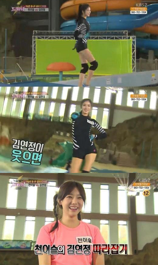 이어 천이슬도 '사뿐사뿐' 안무로 김연정 따라잡기에 나섰다. 하지만 뻣뻣한 춤실력을 과시하며 굴욕을 당했다.