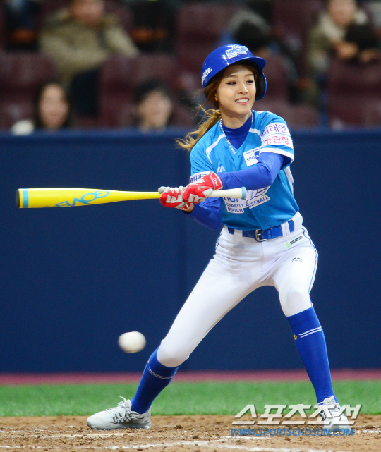 양준혁 야구재단이 개최하는 2015 희망더하기 자선 야구대회가 6일 서울 고척스카이돔에서 열렸다. 종범신팀 타자로 나온 배지현 아나운서가 크게 헛스윙을 하고 있다. 고척돔=정재근 기자 cjg@sportschosun.com