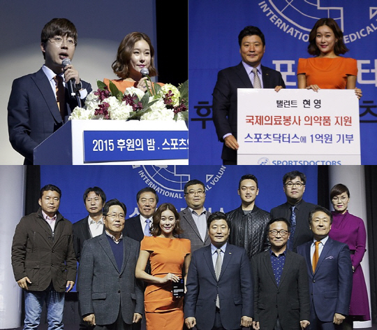 현영은 지난 3일 세빛섬 플로팅 아일랜드 컨벤션에서는 '스포츠닥터스 2015 후원의 밤' 및 '제 2회 스포츠 의료봉사대상 시상식'에서 1억원 후원식을 진행했다.