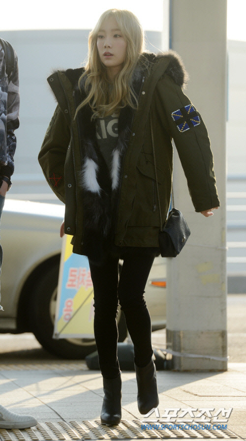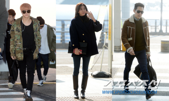 공항패션의 기본은 스타일리시함과 편안함! 스키니 블랙 데님팬츠 위에 스웨트셔츠와 카키톤 야상이 맹추위에도 굴하지 않는 공항패션의 전형이다! 멋져~!(정두영 디자이너)