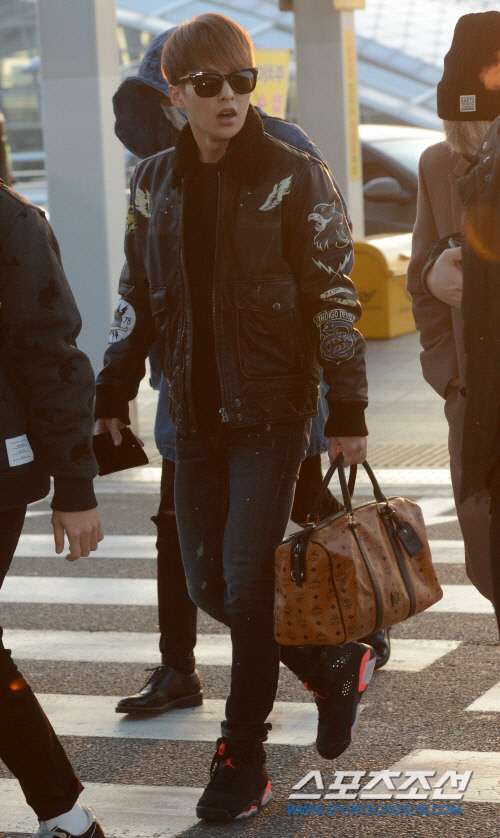 디테일이 강렬한 가죽 소재의 항공점퍼와 데님, 그리고 컬러플한 스니커즈까지 편하면서 스타일리시한 공항 패션이구나~ (정두영 디자이너)