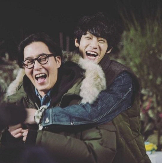 공개된 사진 속 정준영은 김주혁에게 백허그를 하며 다정한 모습을 연출하고 있다.