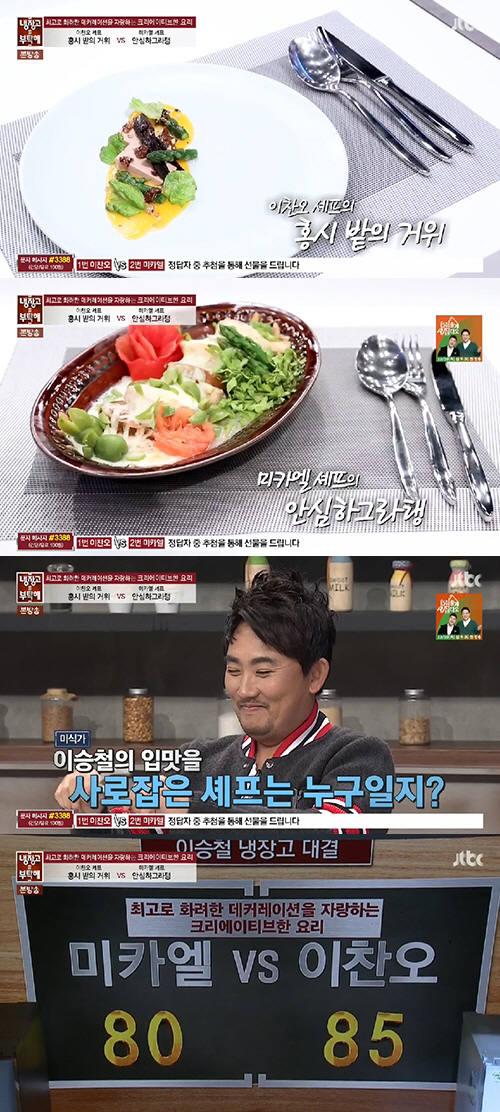 [스포츠조선 조윤선 기자] '냉장고를 부탁해' 이찬오가 미카엘과의 첫 대결에서 승리를 거뒀다.