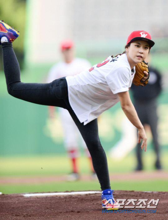 당시 해설위원은 "투수판을 밟고 시구했다. 홍수아 이후 가장 제거리에서 잘 던진 여자 연예인이다. 중심이동도 멀리 하고 포수 미트를 보는 것도 정확하다"고 칭찬했다.