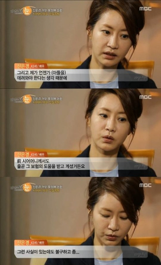 8일 방송된 MBC '리얼스토리 눈'에서는 전 소속사와 법적 공방 및 '거짓 모성애' 논란을 받고 있는 신은경이 직접 출연해 자신의 입장을 밝혔다.