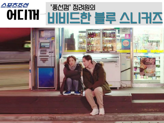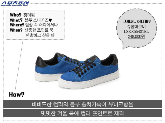 #어디꺼 #스포츠조선 #풍선껌 #정려원 #스니커즈 #발끝에서활력이가득 #겨울일수록블루 #슈콤마보니