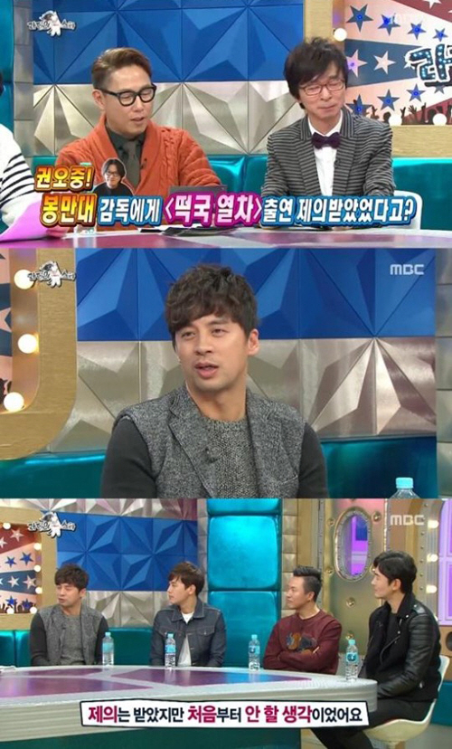 '라디오스타' 권오중이 영화 '떡국열차' 출연 제의를 받고 거절한 사실을 밝혀 눈길을 끌었다.