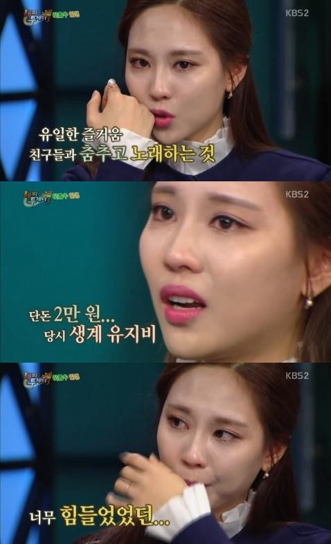 페이는 "그때 난 공부를 잘하지도 못했고, 항상 집에 가면 행복하지 않았다. 친구들이랑 춤추고 공연하고 하루에 2만 원 받았다. 그걸로 생활하면서 살았는데 너무 힘들었다"며 눈물을 흘렸다.