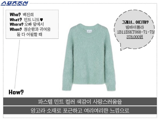 #어디꺼 #스포츠조선 #내딸금사월 #백진희 #앙고라니트 #민트같은상큼한매력 #심쿵니트 #빔바이롤라